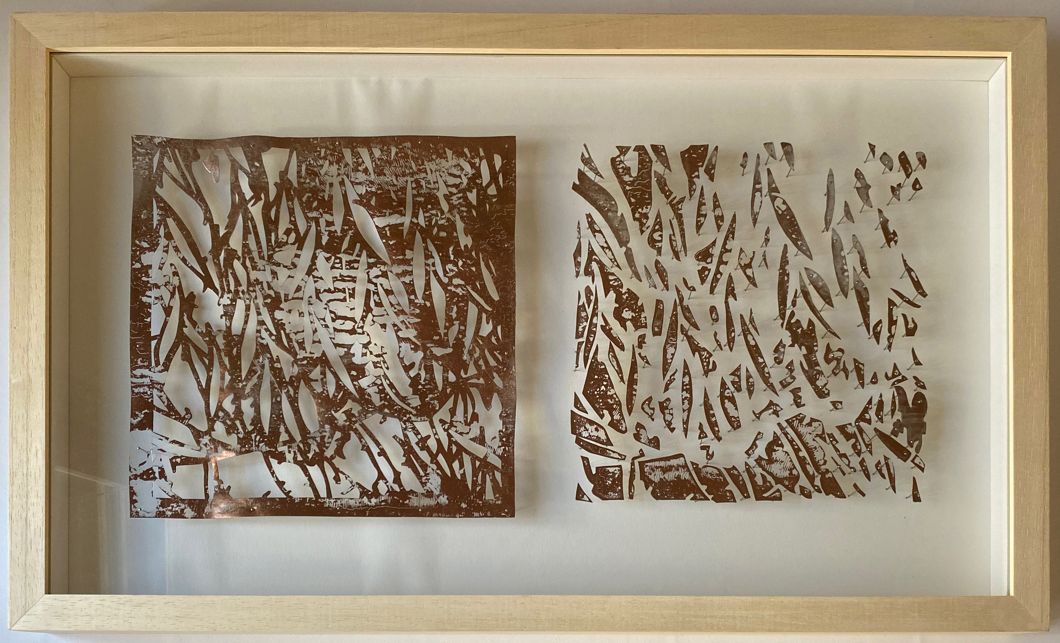 En principio se trató de trasponer mis dibujos, mis textos vegetales hechos en papel y tinta, a otros medios. A partir de esa idea, inicié una investigación que en principio llamé “convertir dibujos en …”. Así fue como empecé a mirar los materiales sobrantes de obras anteriores que tenía disponibles en mi taller, para buscar allí nuevas posibilidades.