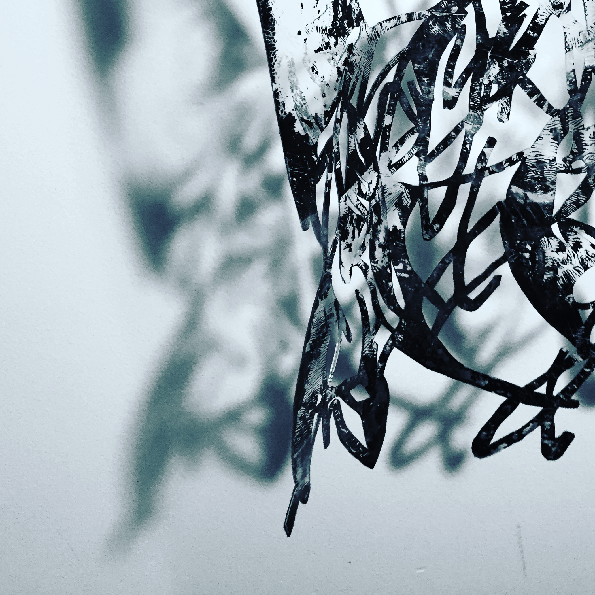 Lo que parecía muy poco encierra una enorme variedad y cantidad de posibilidades, a partir de una misma operación sistemática, que es trasponer mis dibujos a un nuevo material recortando, calando, acumulando, … transité todas las instancias de agotamiento posible. Buscando agotar el caudal y las provisiones (la cantidad de material disponible) puse a prueba mi ingenio, pero sobre todo, mi paciencia.