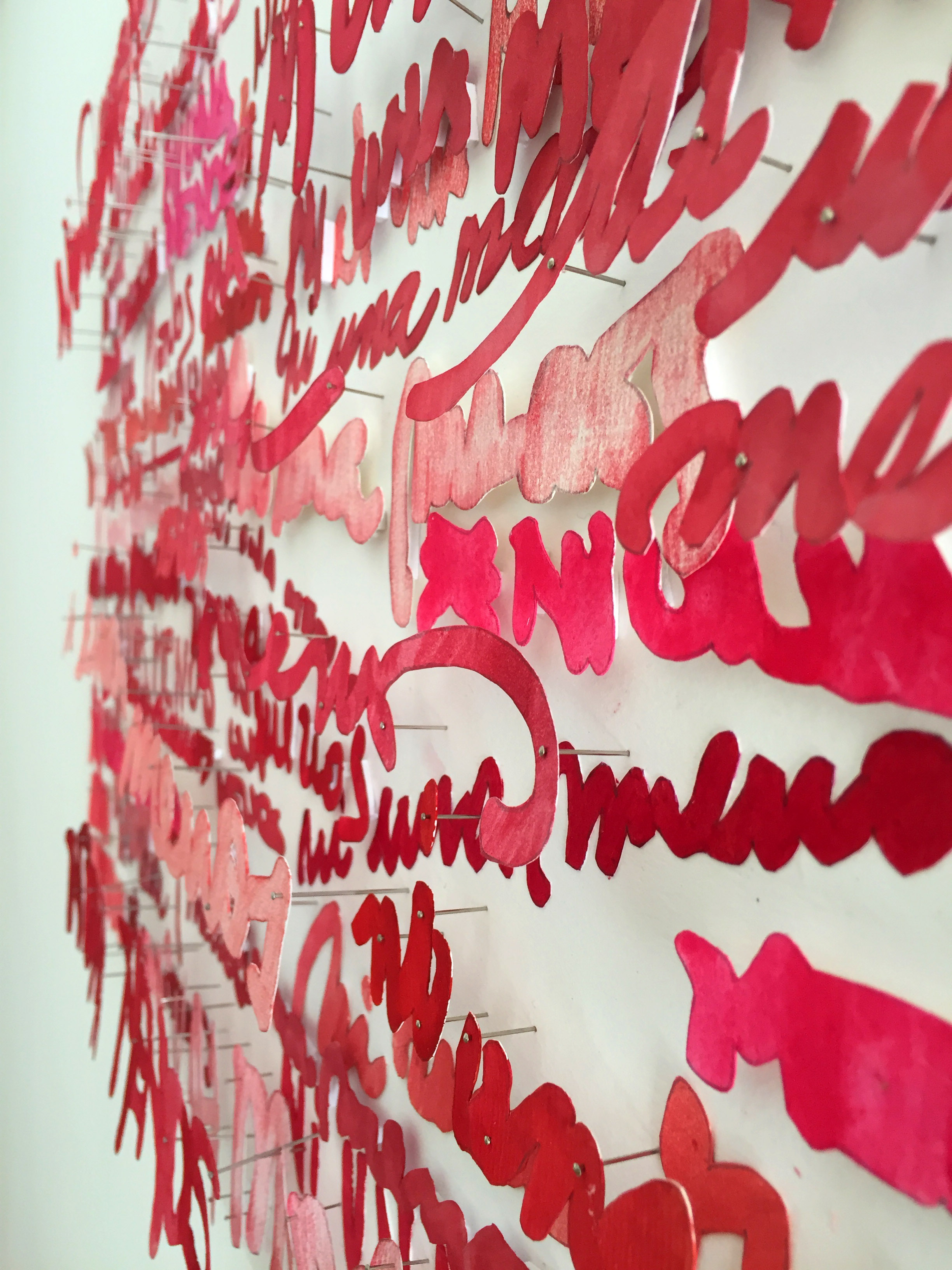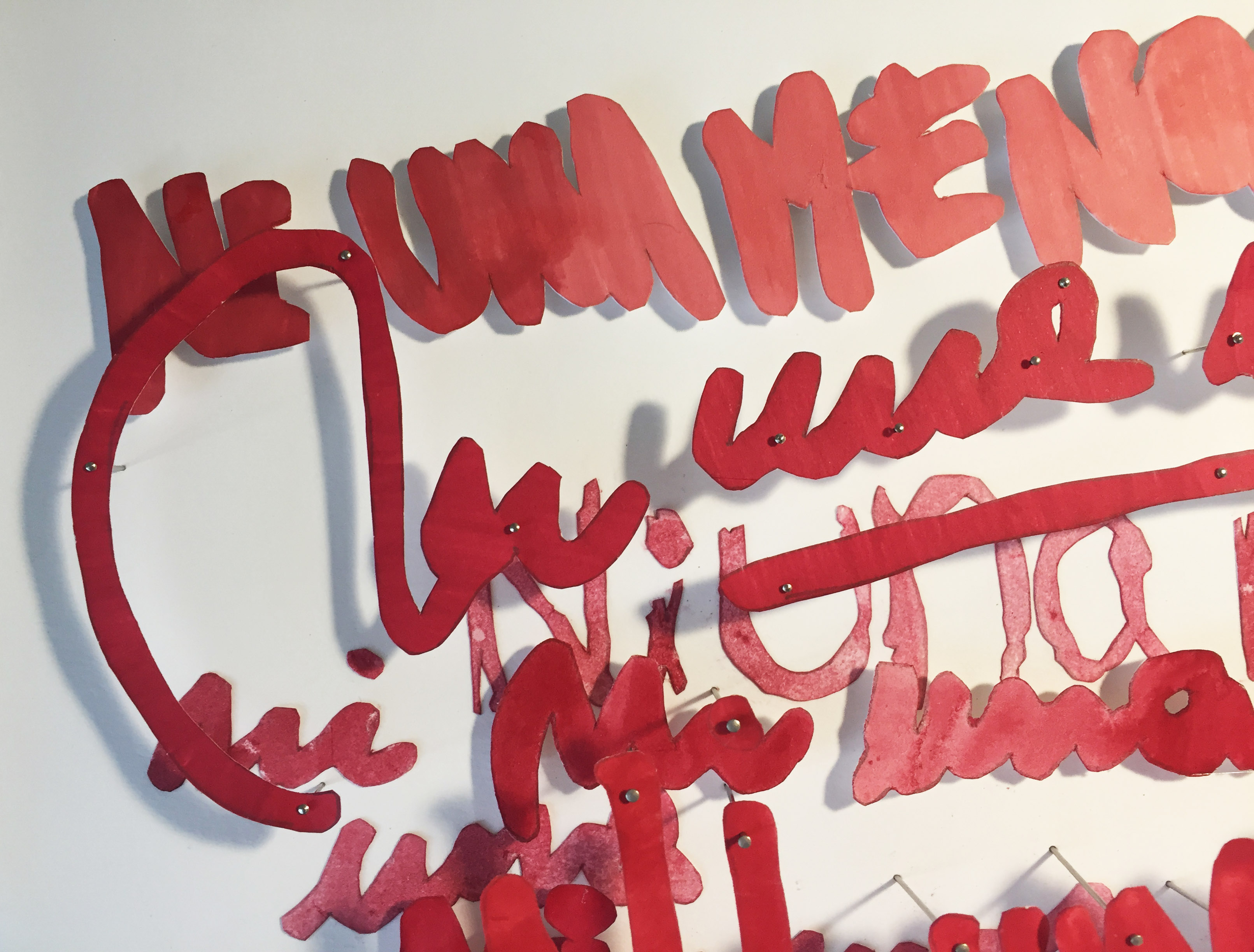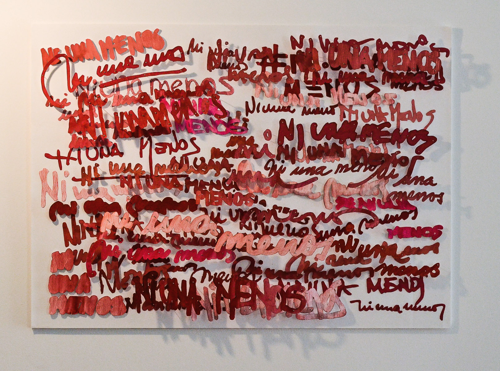 La misma frase escrita por diferentes mujeres pertenecientes al colectivo soyarquitecta.net, del que formo parte. «Ni una menos» escrito por muchas mujeres, mujeres diferentes, mujeres que se conocen y otras que no, pero que se manifiestan con un mismo reclamo con sus individualidades expresadas en su letra manuscrita. Letras de mujeres que yo simplemente corporizo, mi trazo recorre sus trazos cuando repaso y recorto a mano sus letras, … Este proyecto fue la base de una intervención en el edificio del Ministerio de las Mujeres, Géneros y Diversidades de la Nación y obtuvo el Premio Un Ministerio para las Mujeres otorgado por la ONU y el Minger de la Nación (en ejecución).